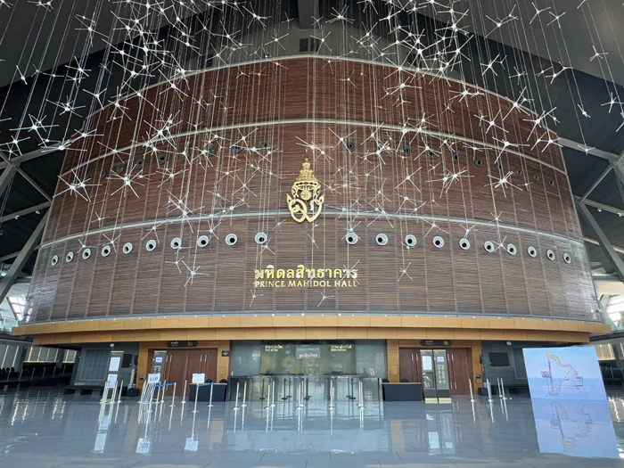 バンコク有数のコンサートホールには、追加公演を含む2日間で約2,000人以上が集まり、会場入り口横に置かれたハープを弾くヴァイオレットのメインビジュアルパネルが多くのファンを迎えました。