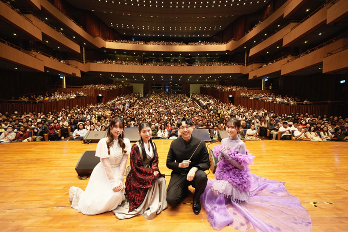 アンコールでは結城アイラさんが登壇し、『Violet Snow』を届けました。オーケストラの壮大な演奏とハープの穏やかな音色に乗せて、繊細な歌声が会場を優しく包み込みました。結城アイラさんのお辞儀とともに、次々と観客が立ち上がり盛大な拍手を送ります。